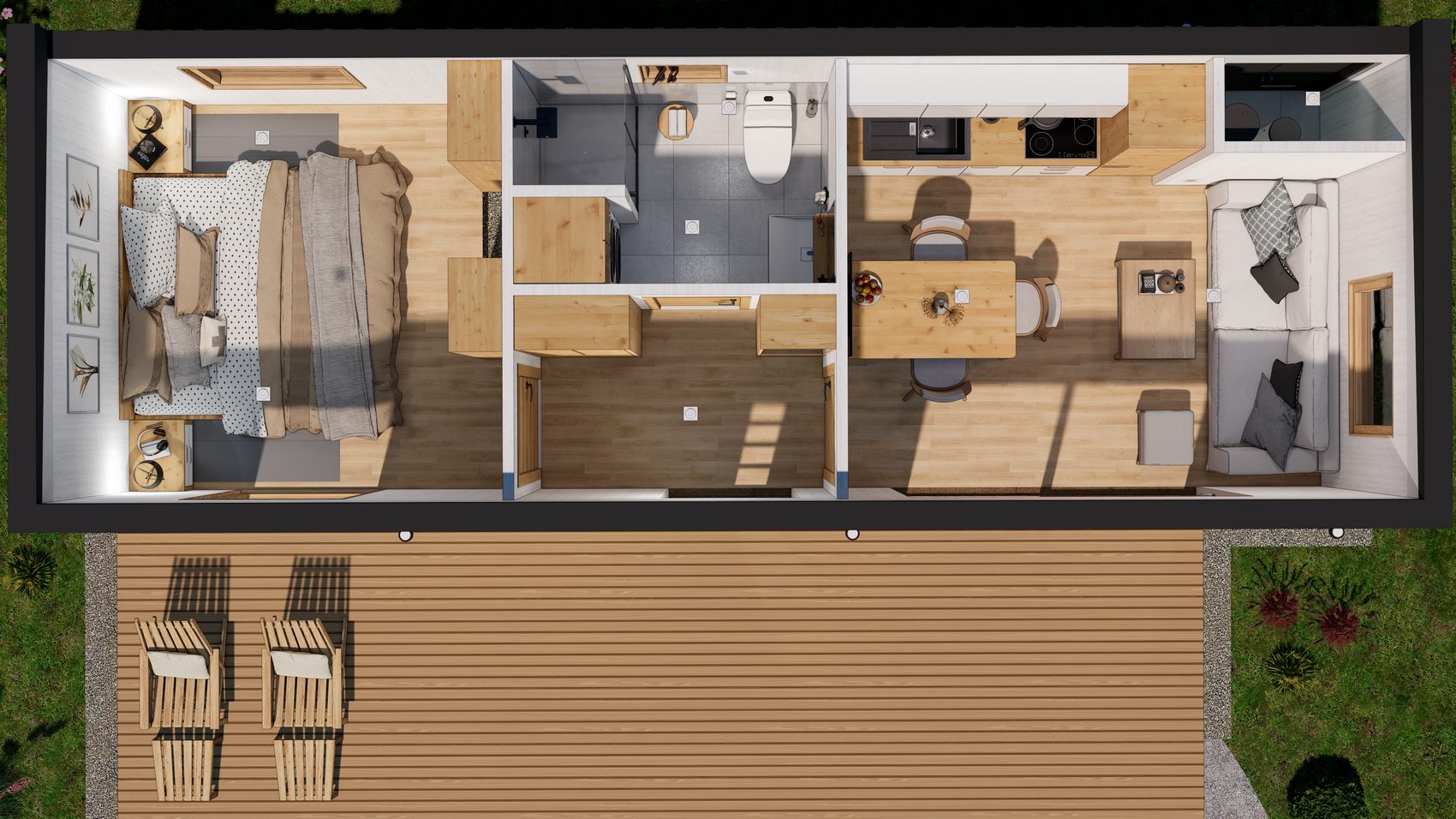 36 m2 verbaute Fläche (9 x 4m)