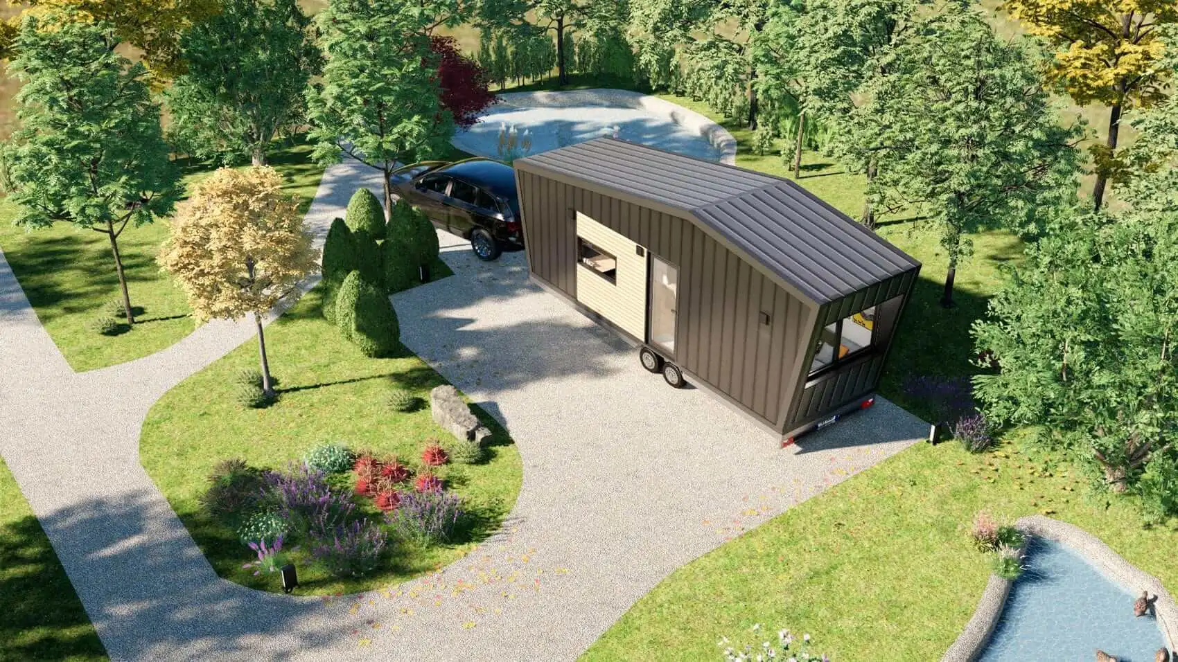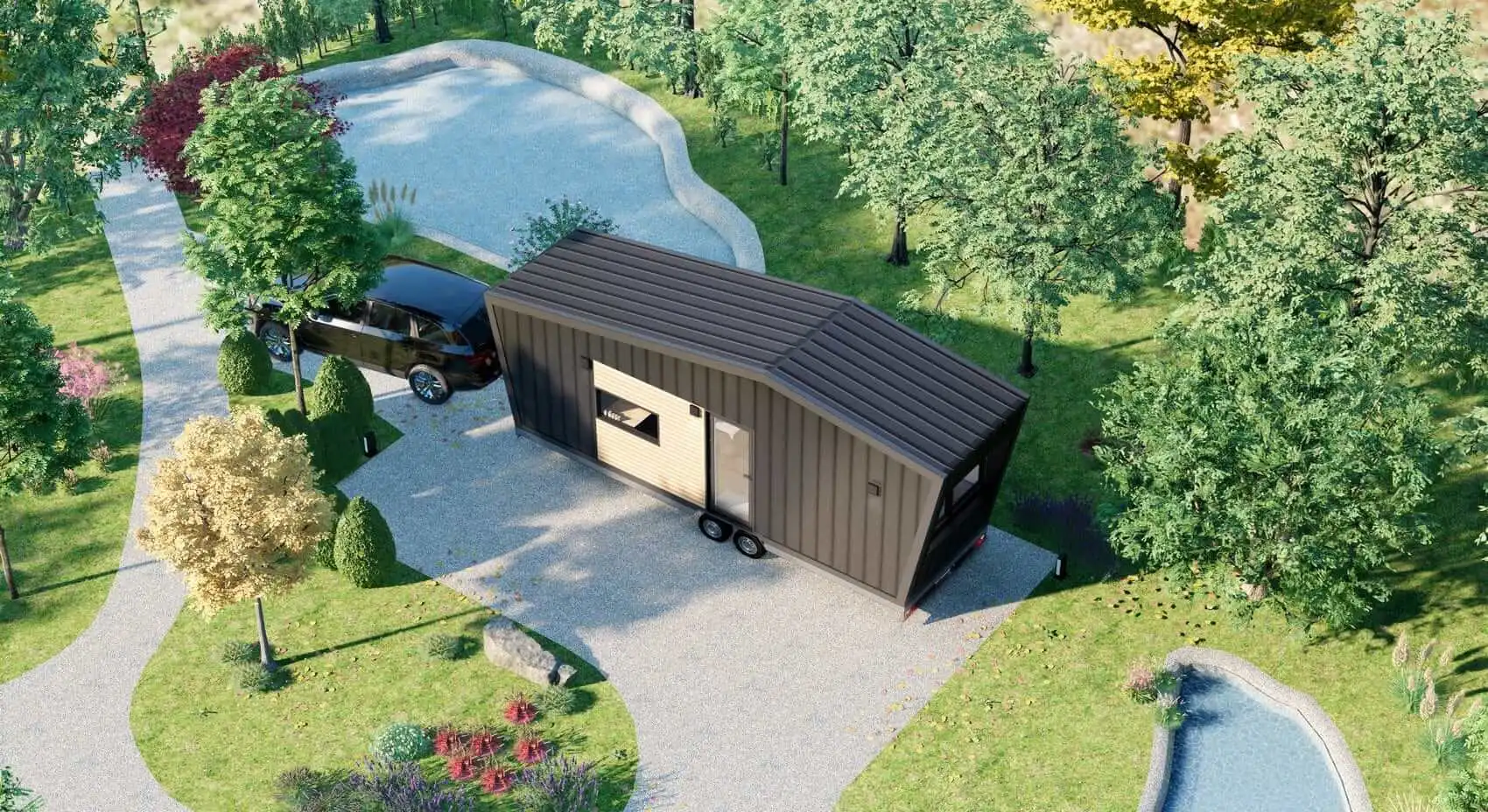 - Zunanja fasada-macesen, večji del aluminij PREFA